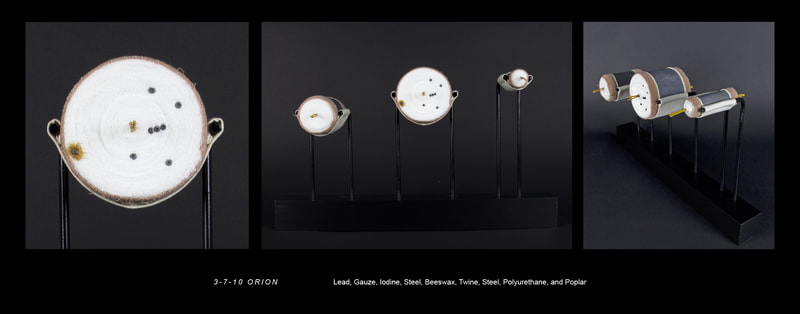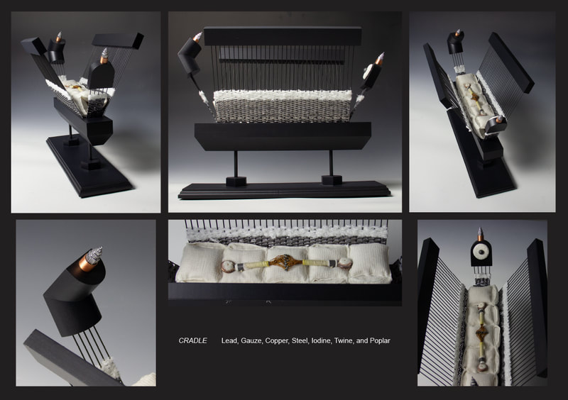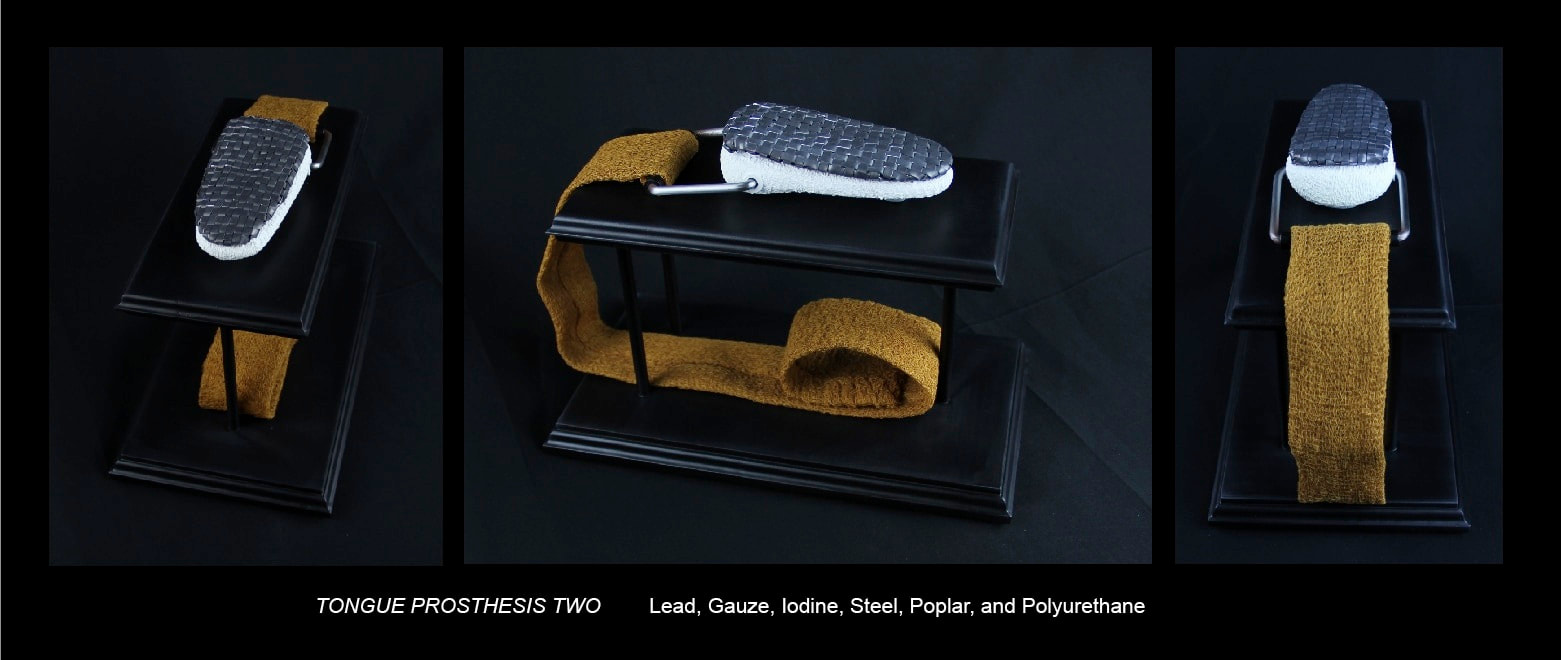 Lead and gauze represent the dependent relationship maintained between humanity’s tendency towards damage and its desire for regeneration. The dependence in this correlation exists in the observation that a bandage without a wound is merely an affectation and a wound without healing is an invitation to an untimely demise. My work occupies the liminal point where injury and restoration merge into a simultaneous elegy to brokenness and a prayer for the hope of redemption.